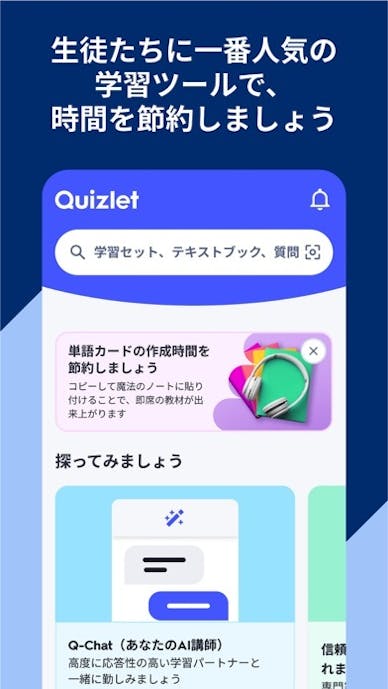 自作カードに加え、先生や学習者が作成した5億件以上の学習セットから選んで使えるのが特徴です。