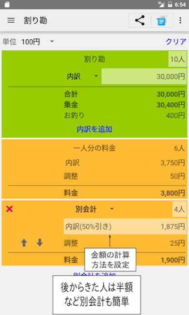そんな時のために、一人ずつや条件別で比重を変えて計算できるアプリを選んでおくと便利です。