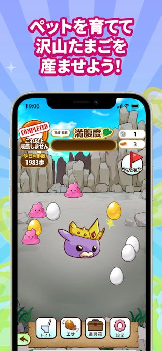 歩けば歩くほど金のタマゴが出やすくなり、スライムの進化で高レア報酬も狙える仕組みだから、毎日の一歩がワクワクに直結。