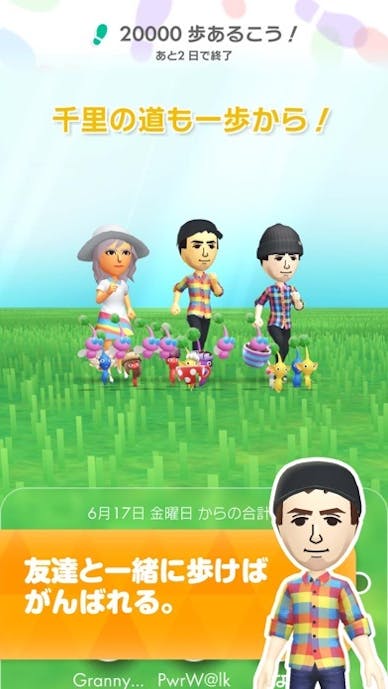さらに「ウィークリーチャレンジ」では家族や友達と歩数を合算し、全員で目標達成を目指す仕組みも用意。仲間の進捗バーが伸びていくたびにやる気がアップします。