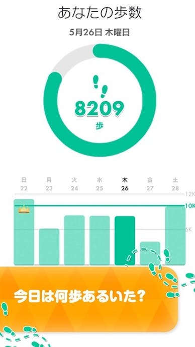 運動の対象はウォーキングのみですが、歩数はスマホの位置情報と自動連動。