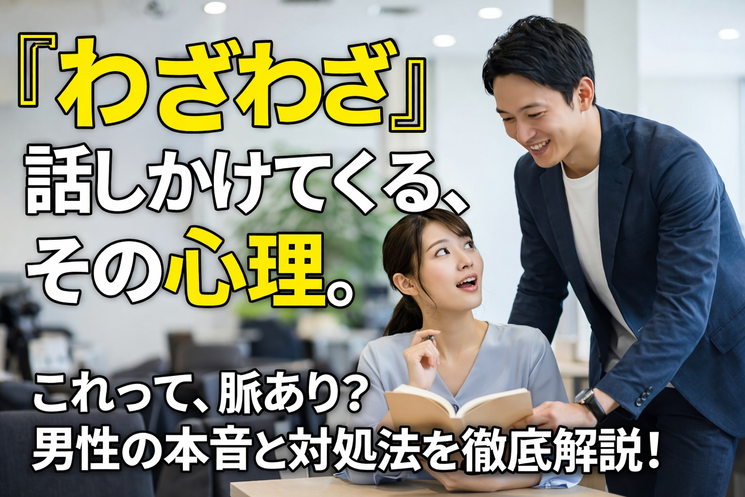 そこで本記事では、わざわざ話しかけてくる男性心理をパターン別に整理しながら、脈ありかどうかを見極めるポイントを解説。さらに、距離を縮めたい時・やんわりかわしたい時、それぞれの対処法も紹介します。