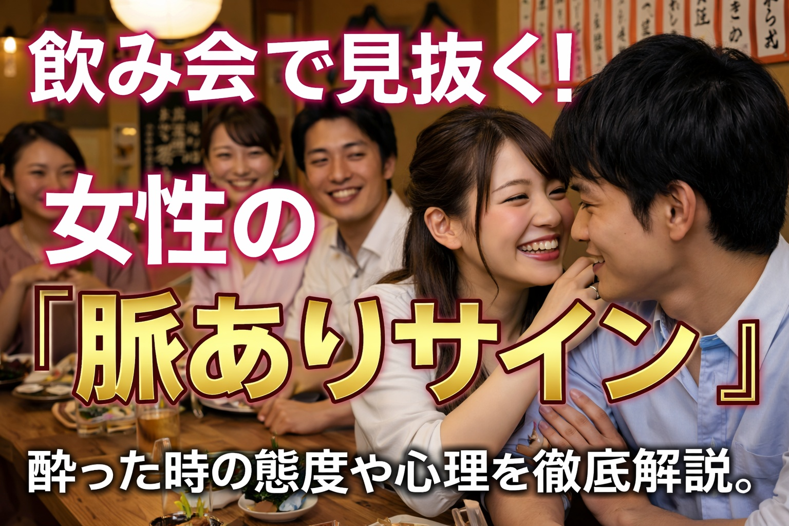 そこで本記事では、飲み会で女性が見せる脈ありサインを、酔った時の態度・会話・ボディタッチ・LINEの変化まで具体的に解説します。