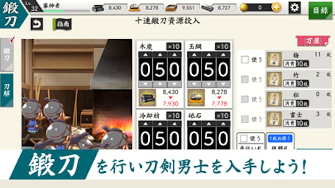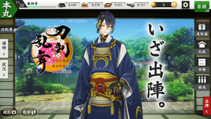 『刀剣乱舞ONLINE』は、名刀が青年姿となって時空を旅する刀剣育成シミュレーションゲーム。
