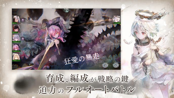 バトルはオート進行ながら、陣形やスキルの順番次第で戦況が大きく変化。