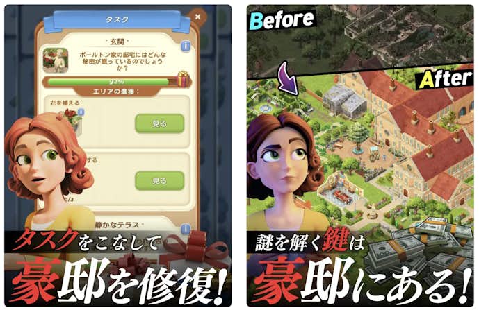 第20位. シーサイドエスケープ:女優ローワンと一緒に島を自由にリノベートできる!秘密が明らかになる物語も面白いマージ系アプリ