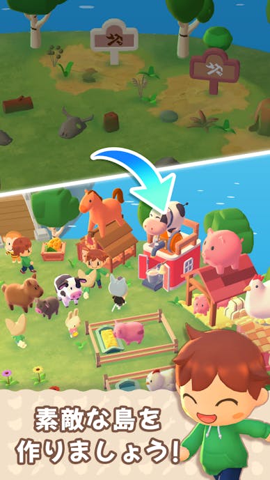 こちらのアプリは、自分だけの牧場を作り、ユニークな村人との交流を楽しむ農園シュミレーションゲーム。
