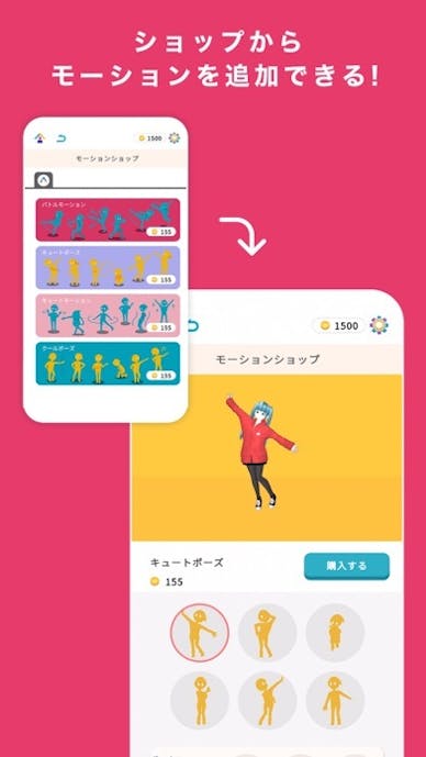 初期状態で6種のポーズやダンスが使えて、アバターを自由に動かせるのも魅力。