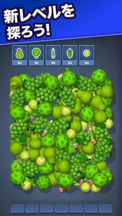 果物やアイス、工具などさまざまなオブジェクトをタップで集め、ラックが埋まる前にすべてのピースを片付ければステージクリア。