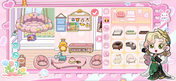 サンリオの世界観で、やさしい色合いに包まれながら空間を作っていく時間は、癒しそのもの。
