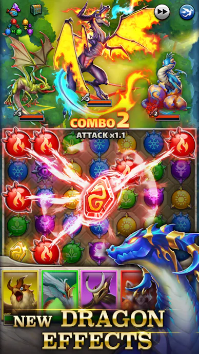 ゲーム内で様々なアイテムやオブジェクトを3つ組み合わせてマージし、最終的には強力なドラゴンが誕生する仕組みとなっており、600以上のステージでドラゴンの力を使ってクリアできるようになっています。