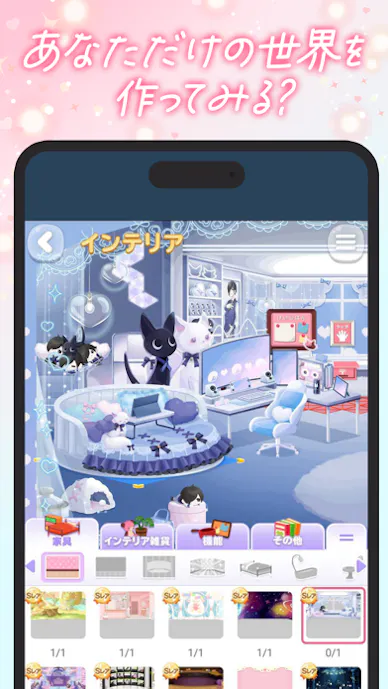 共有クローゼットで一緒に服を選んだり、家具や壁紙を並べてふたりの空間をカスタマイズできますよ。