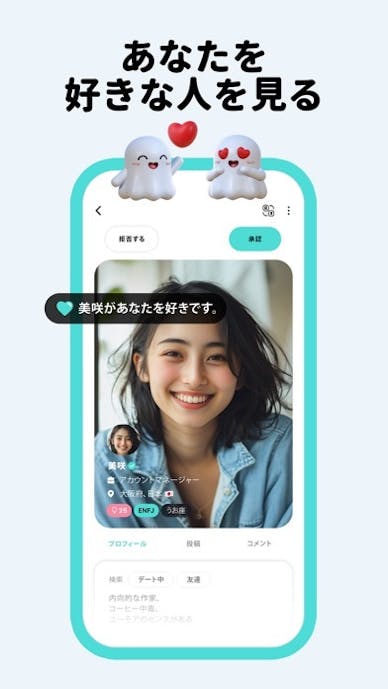 友だち作りにも対応し、プロフィールの“出会いの目的”を「友だち」に設定し、興味や関心タグを共有すれば、同じ趣味を持つ同性と繋がりやすくなります。