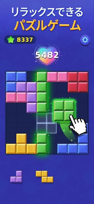 様々な形のブロックを配置して、縦や横一列に並べるか、3x3のマスを埋めてブロックを消していきます。ゲームの進捗はランキング化され、チャレンジモードでは日々新たな目標に挑戦できますよ。