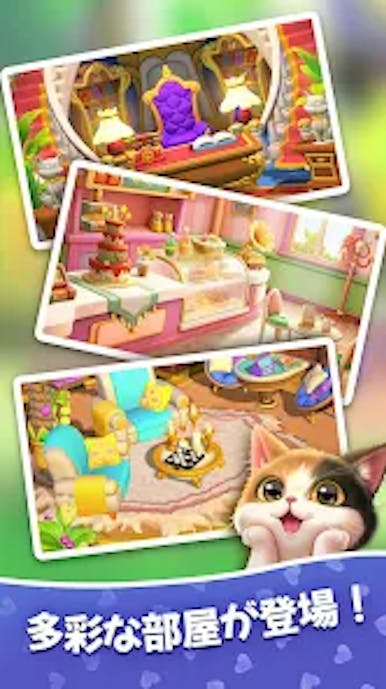 プレイヤーはシンプルながら奥深い3マッチパズルを解きながら、ステージをクリアして「★」を獲得し、マンションの各部屋をリフォームしていきます。