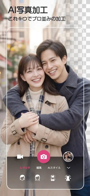 顔写真を選ぶと、レタッチや顔加工ができる画面に移動します。