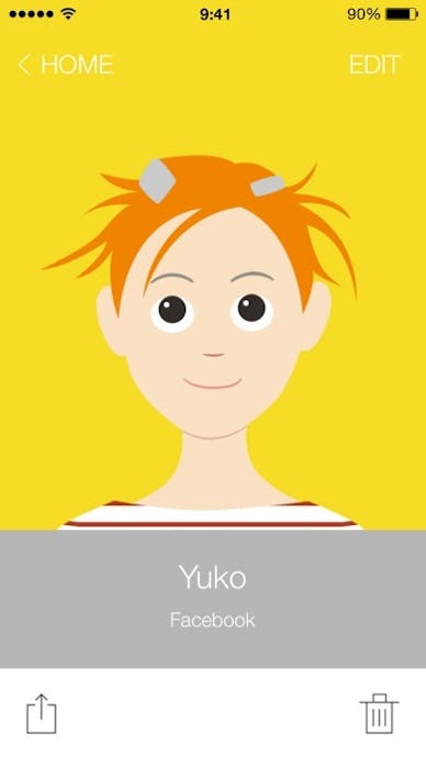 他の似顔絵アプリに比べて、輪郭や目の形など細かな調整ができないため、フラットなデザインになりますが、そのぶん顔の特徴を捉えたシンプルで分かりやす似顔絵を作れるのが魅力。