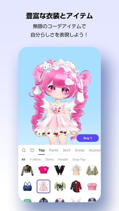 自分好みにパーツをいじれるから、可愛いアバターが完成します。バーチャル着せ替えも面白い!