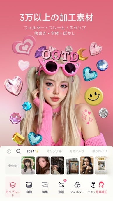 ダウンロード数、9,000万以上の実績を持つ人気アプリなので、加工種類の豊富さや使いやすさも抜群です。