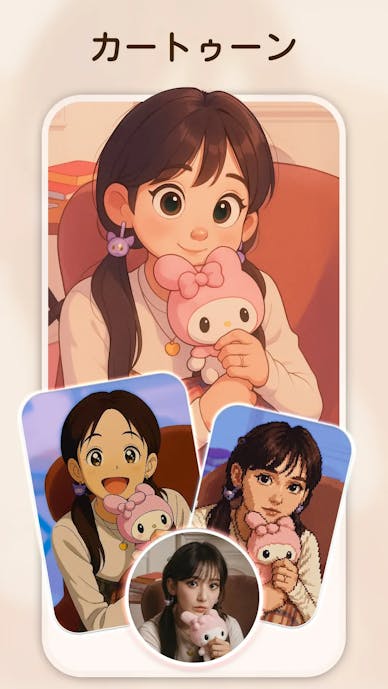 自分をアニメキャラや特別なキャラクターに変身させたい方は「AIアバター」機能を使うと良いでしょう。