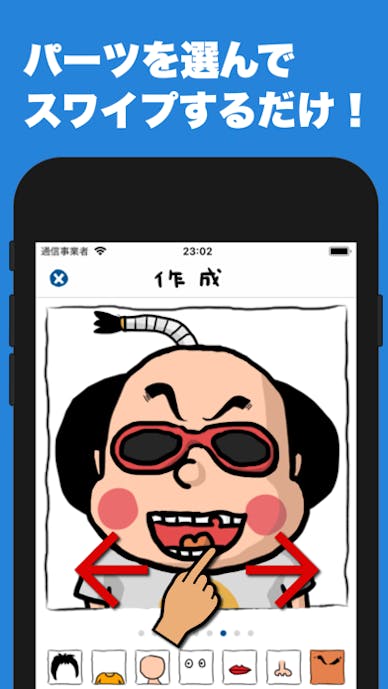 ちょっぴりふざけたアイコンに仕上がります。選べるパーツは少ないですが、簡単に面白いアイコンを作れるから使いやすい!