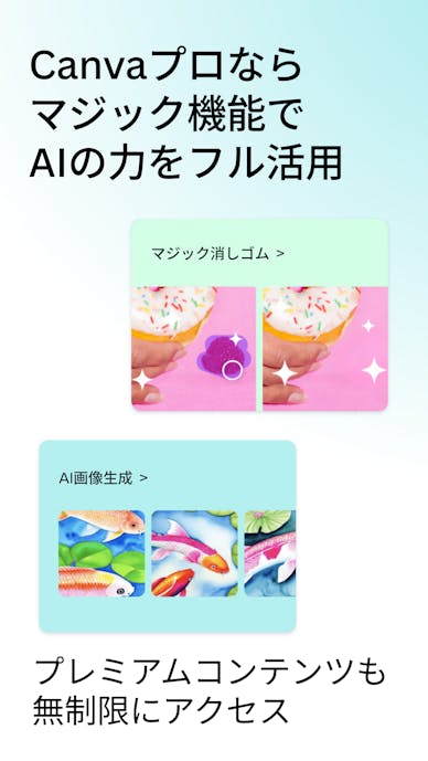 61万点以上のテンプレートや1億点以上素材が揃っているので、写真なしでも魅力的なグラフィックやテキストベースの投稿が完成します。
