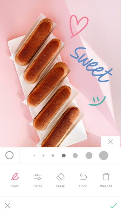 さらに、撮影後は「レタッチ」機能で肌や顔のパーツ補正も可能。加工感を出さずに、ほどよくきれいに仕上げられるのが魅力です。