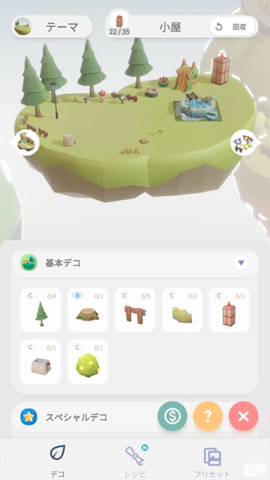 資材を集めてデコレーションを加えれば、自分だけの楽園をコツコツとつくり上げる楽しさが広がりますよ。