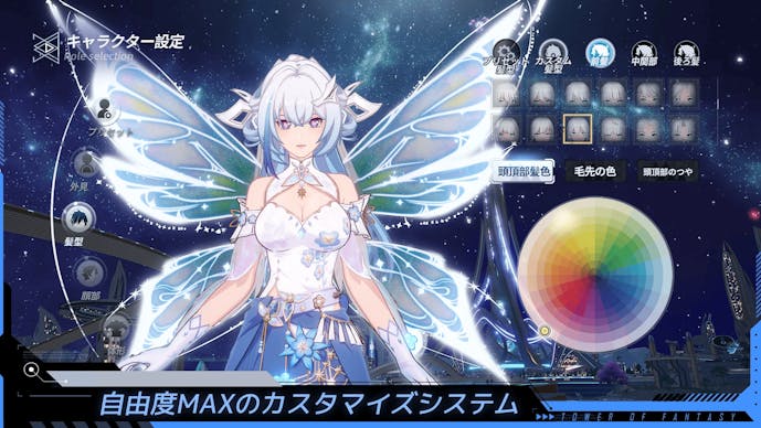 ゲーム開始時に主人公の性別を選択でき、さらに髪型・目・性格なども細かくカスタマイズ可能。