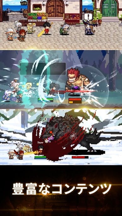 『スレイヤーレジェンド』は、高クオリティなドット絵で冒険と成長を楽しめる放置系RPG。