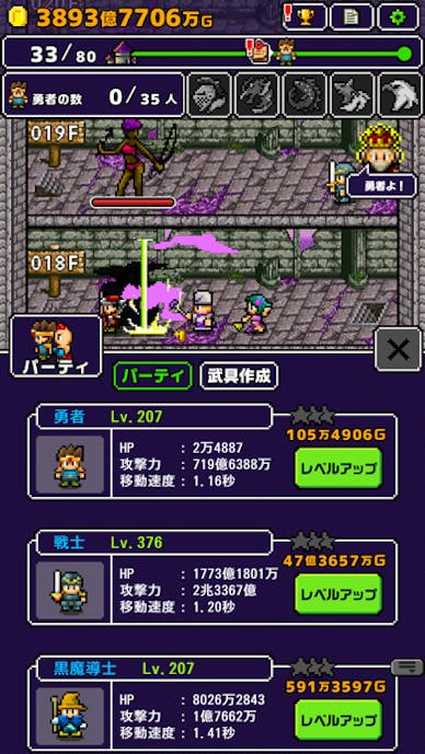 高精細なドット絵のアクションを味わいながら、放置で気軽に強くなれるのが大きな魅力。