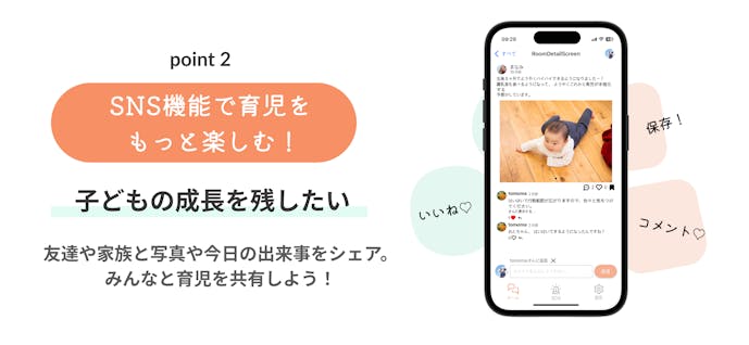 毎日の写真とひとことが未来のアルバムになり、育児を楽しく続けるきっかけになるでしょう。