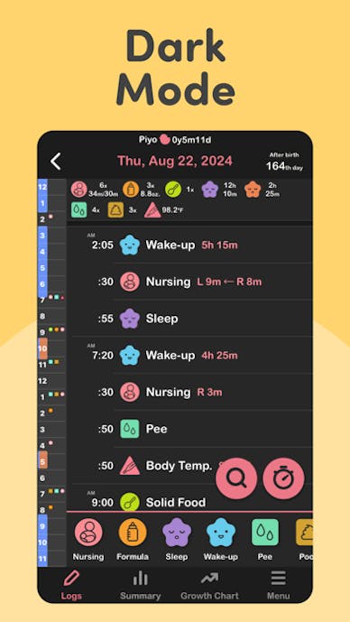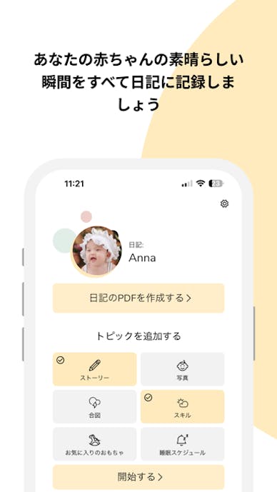 授乳や食事、睡眠やおむつ交換などの育児ログを記録でき、その内容はグラフで表示されるため、赤ちゃんの生活リズムを直感的に把握できます。
