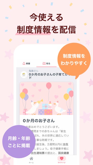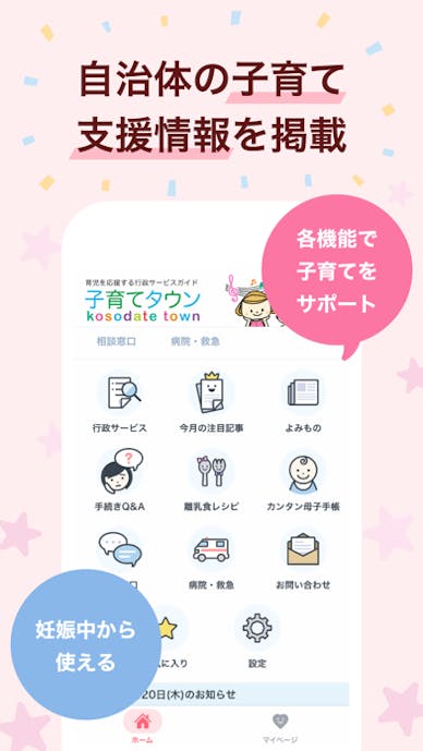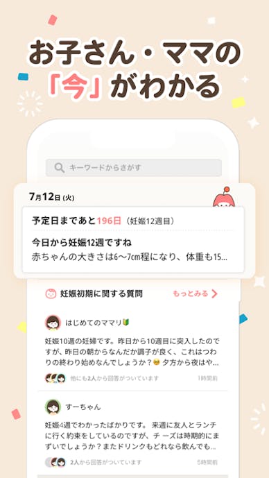 妊娠週数に合わせたアドバイスや胎児の成長情報を提供してくれるため、安心して出産準備を進められます。