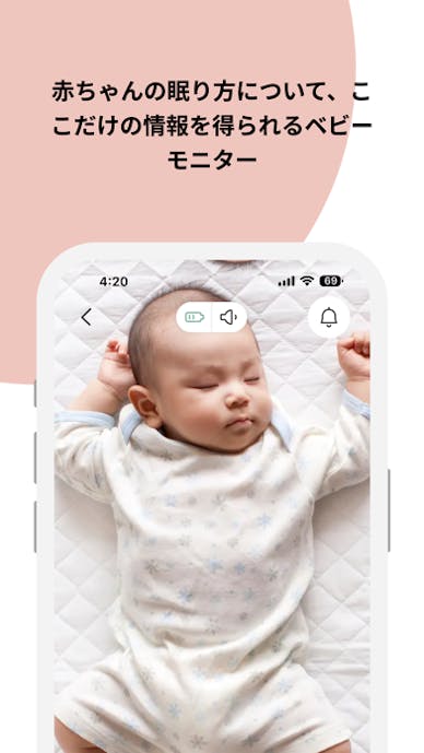 寝かしつけの様子を記録して改善点を探せるのも特徴で、赤ちゃんの睡眠リズムを整えるサポートにつながりますよ。