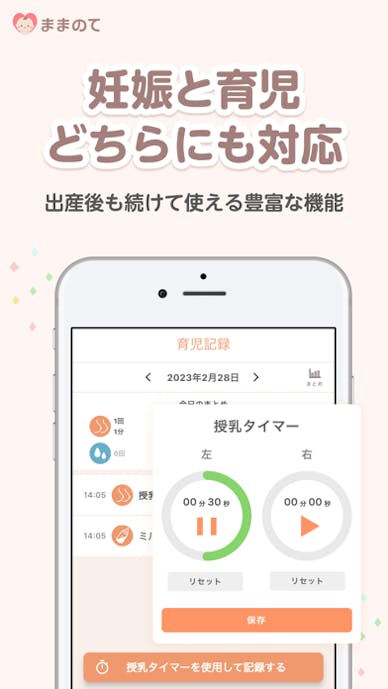 出産後は授乳やおむつ、睡眠などの記録に対応しており、赤ちゃんの生活リズムを整えやすく、成長を見逃さないようサポートしてくれます。