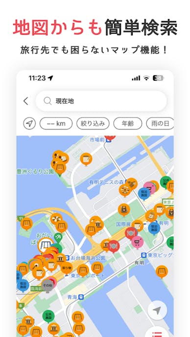 現在地から周辺の施設やイベントを地図で検索でき、週末のお出かけ先をすぐに見つけられるのが魅力です。