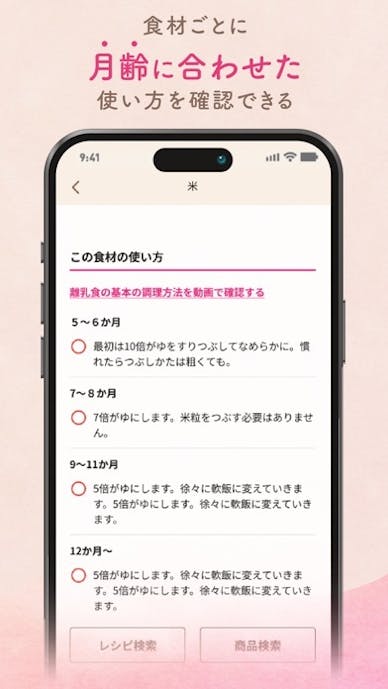 離乳食の進め方や保存、時短テクを紹介する記事も読めるので、情報アプリとしても使えます。
