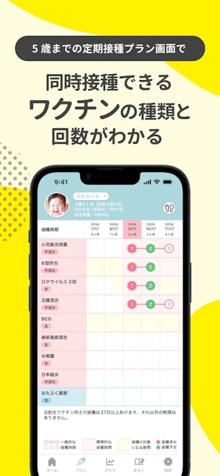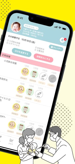 予防接種や健診をリマインダーで忘れず管理できる! 予定を確認しながら進められる子育てサポートアプリ |