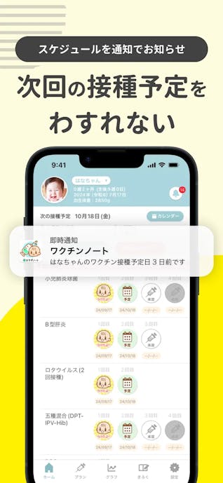 予防接種や健診をアラートで忘れず管理できる! 大切な予定をしっかり支える子育てサポートアプリ |