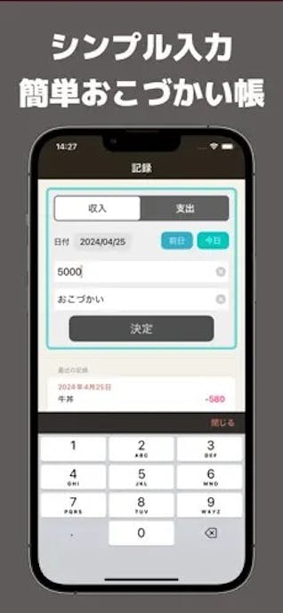 手入力も直感的にでき、毎日のこづかい管理をサクサク進められます。