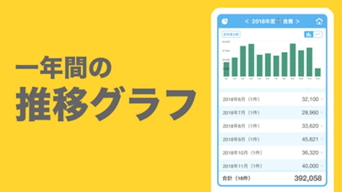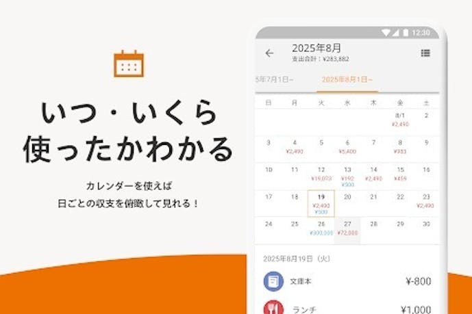 買い物情報を残すとグラフやカレンダー、リストで支出を振り返れ、“いつ・何に使ったか”がひと目で分かります。