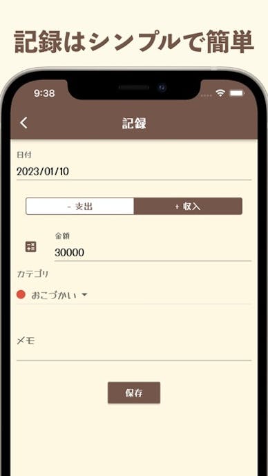 シンプルな入力操作で数秒あれば記録が完了! 家計簿初心者でも続けやすい無料お小遣い帳アプリ |