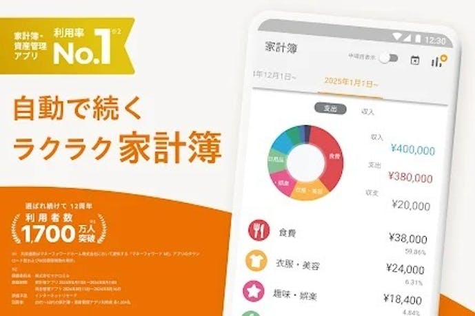 第1位. マネーフォワード ME:カレンダーとグラフで残高推移が一目でわかる!お金の使いすぎ防止に役立つ無料お小遣い帳アプリ
