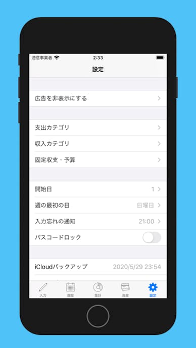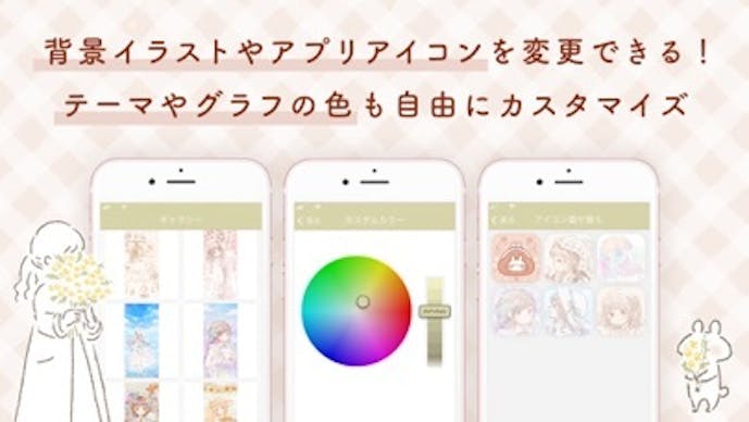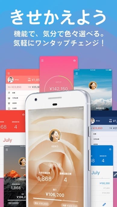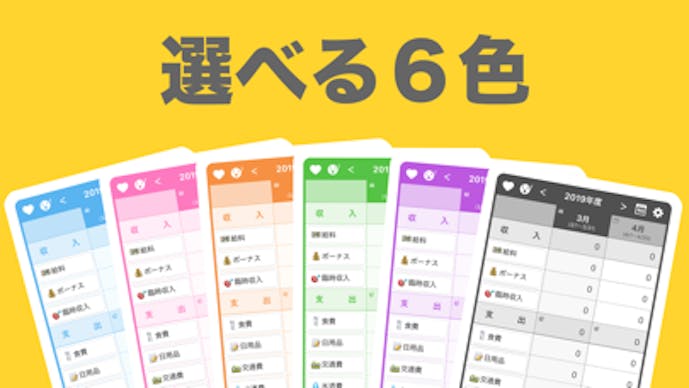背景画像や色テーマ、アプリアイコンの着せ替えも可能で、自分らしい家計簿に仕立てられますよ。