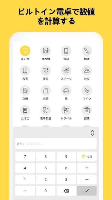 カテゴリは自由に追加・並べ替えが可能で、よく使う項目だけに絞ってスピーディーに記録。