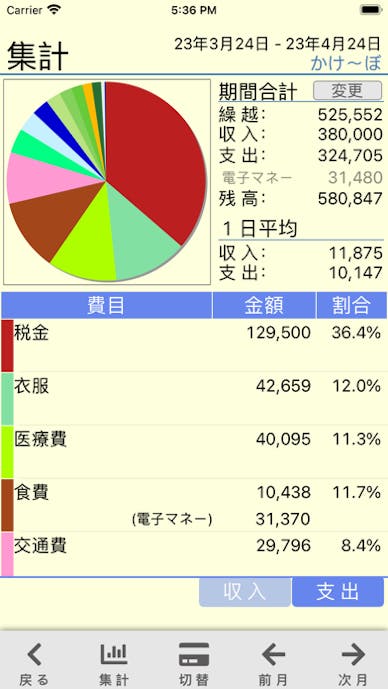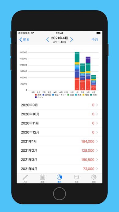 収支の推移を見返すたびに管理が上達してるのが実感できます!
