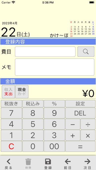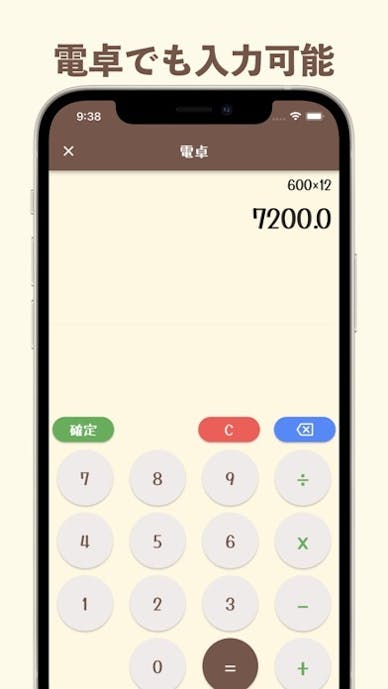 税込計算に使える簡易電卓も内蔵され、ちょっとした計算もアプリ内で完結します。