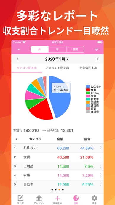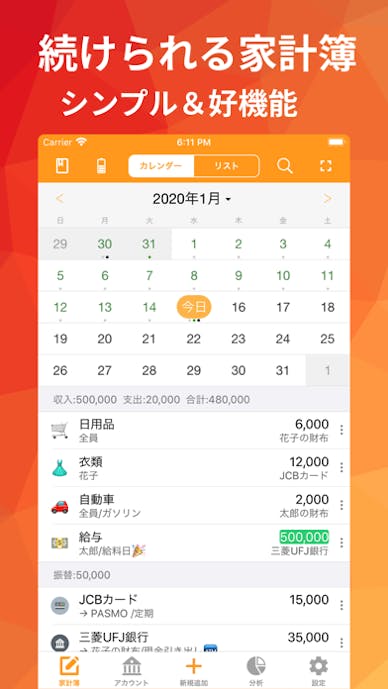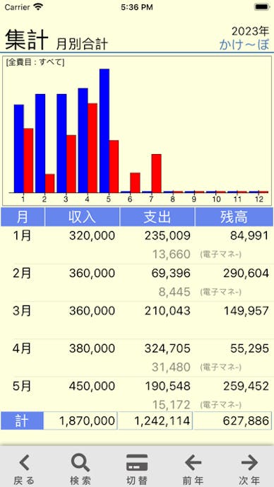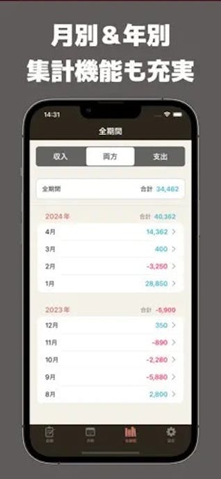 カレンダーやグラフの一覧性が高く、使いすぎの早期発見にも役立ちますよ。