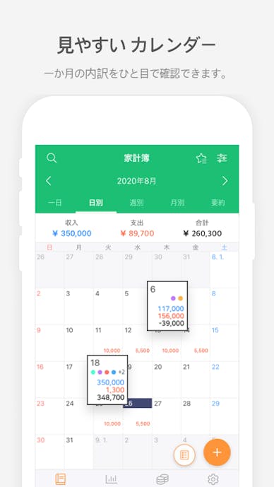 カレンダーに収支が一目で反映されるのが気持ちいい!
